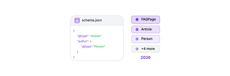 Which Schema.org schemas actually impact AI citations? FAQPage, Article, Person, Organization, HowTo, and more. Complete code examples ready to implement.