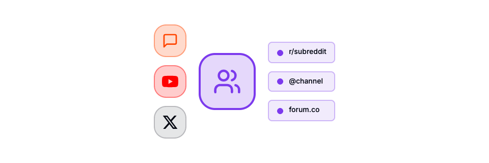 Understand which social platforms and communities AI engines trust and cite. Monitor Reddit, YouTube, Twitter, forums, and more across all major AI platforms.