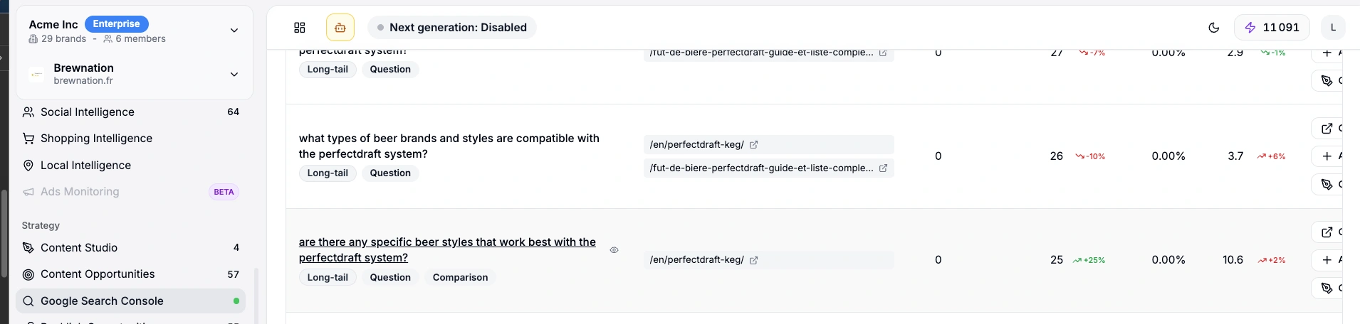 We have an entire GSC integration that helps you see up to 25k queries (compared to 1k on Google Search Console).