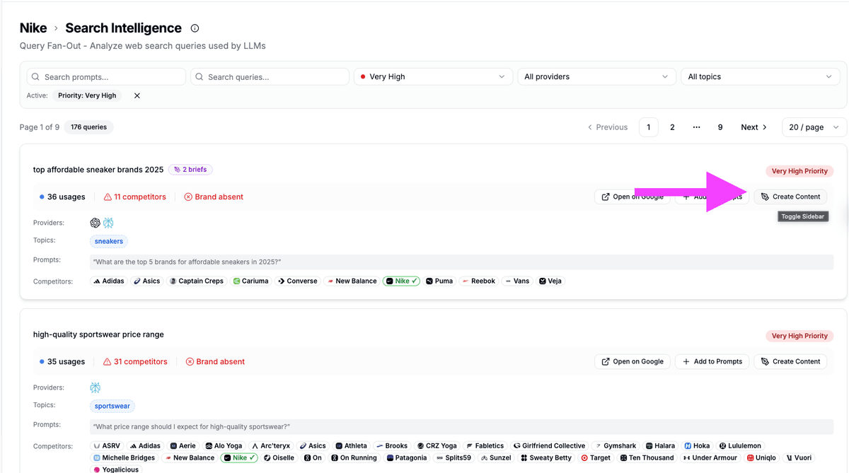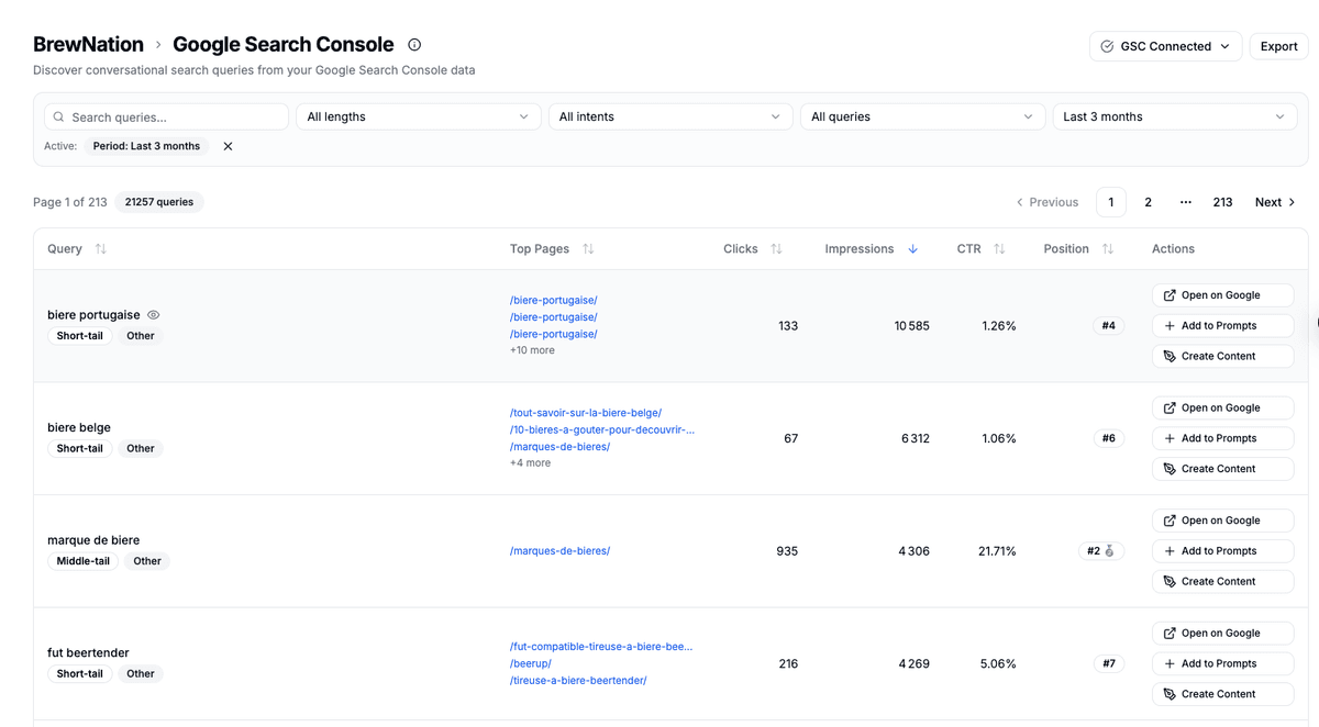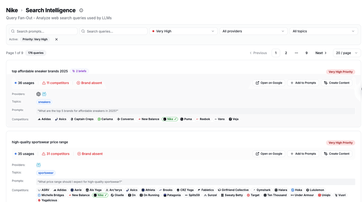 - Search Intelligence - From discovered query fan-outs and long-tail opportunities