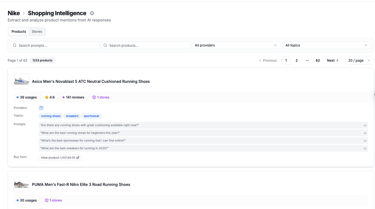This reveals which products need dedicated content, which features AI misunderstands, and where competitors are winning product recommendations.